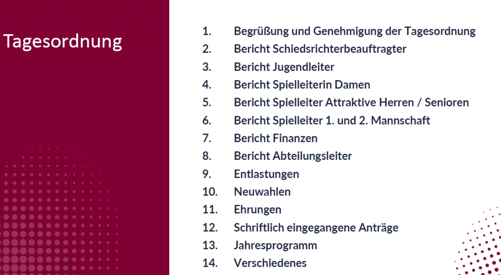 Anträge zur Tagesordnung sind bitte bis spätestens 02.10.2025 schriftlich beim Vorstand einzureichen.